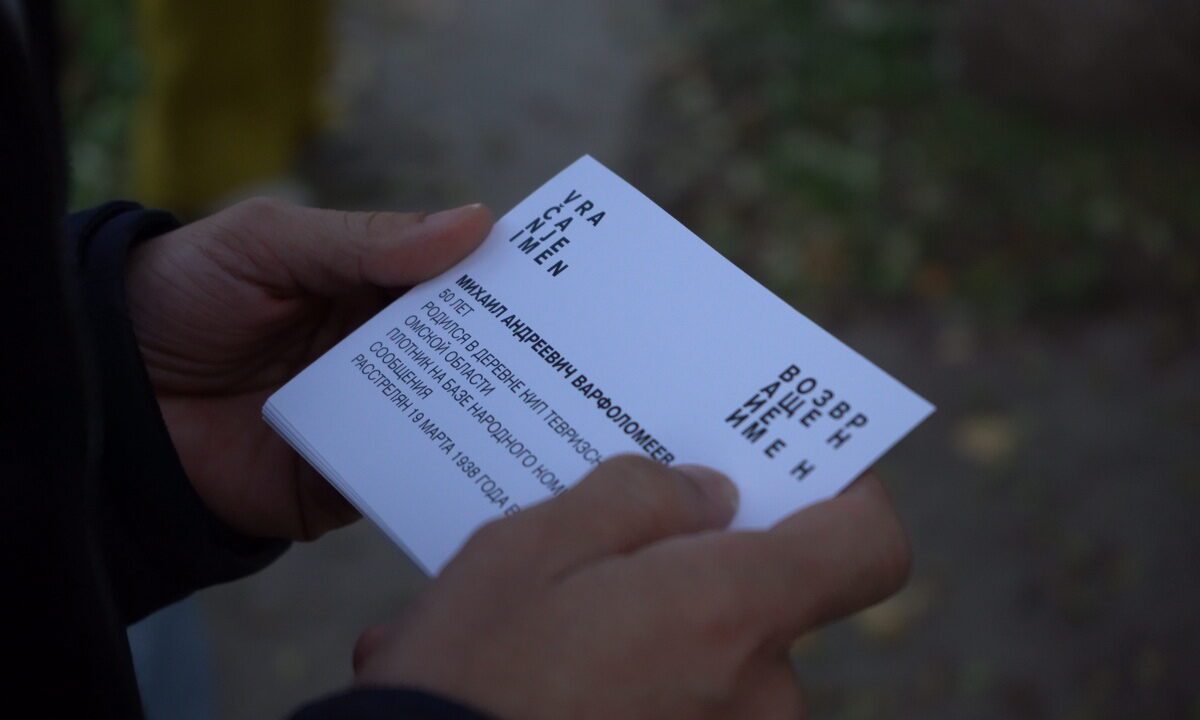 Restitution des noms est une action annuelle de mémoire des victimes de la terreur soviétique. Chaque année, le 29 octobre, des personnes se réunissent dans le monde entier pour lire à voix haute les noms des personnes exécutées ou réprimées par l’État soviétique — et pour se voir, se reconnaître mutuellement. Cette année ne fera pas exception.